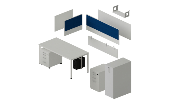 – Biurko na nogach w kształcie litery C z belką metalową, spełniającą jednocześnie funkcję kanału kablowego poziomego. Opcjonalnie możliwość montażu pionowego kanału kablowego jako wypełnienie pomiędzy pionowymi elementami nogi. Biurko występuje również w wersji z regulacją wysokości w zakresie 680 – 820 mm.